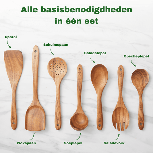 Bekijk al onze verschillende keukengerei sets gemaakt van teakhout.